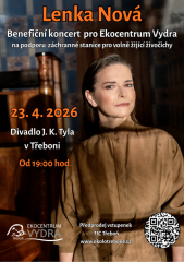 Pozvánka 23. dubna 2026 do Třeboně na benefiční koncert Lenky Nové na podporu Ekocentra Vydra. Od 19 h. v Divadle J. K....
