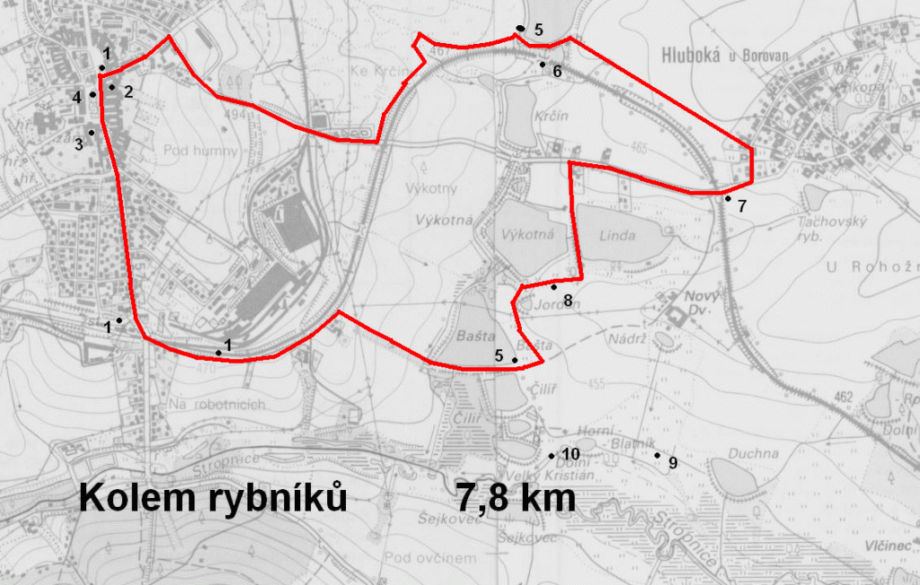 10. Zde jsme na okraji Národní přírodní rezervace Brouskův mlýn – nivy i v rámci ČR vzácně volně meandrující říčky Stropnice, kde zůstal zachován přirozený komplex vodní, mokřadní a luční vegetace s výskytem celé řady vzácných a ohrožených živočichů a rostlin včetně rašelinných společenstev. V r. 1992 zde byl vyhlášen nejvyšší stupeň ochrany na rozloze více než 138 ha.