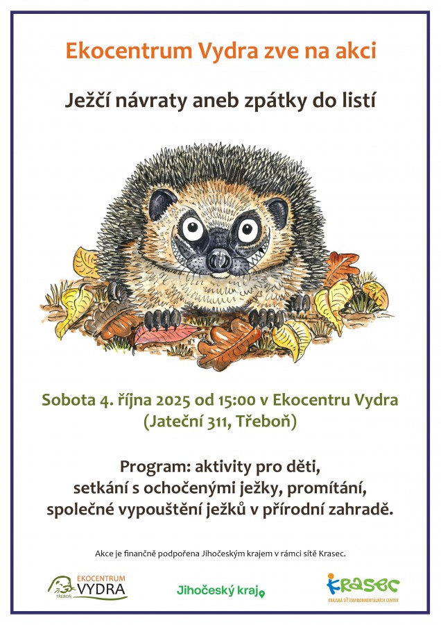 V sobotu 4. října od 15:00 hod. na vás v Ekocentru Vydra čeká tradiční setkání s bodlinatými sousedy!
