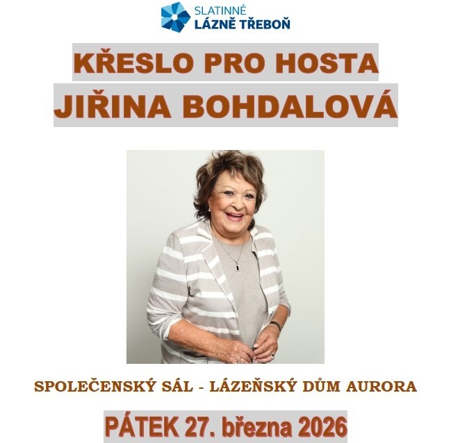 Pozvánka v pátek 27. března 2026 na Třeboně do lázeňského domu Aurora na setkání s Jiřinou Bohdalovou.