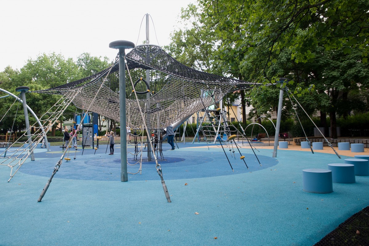 Děti si mohou vyhrát na obří houpačce, lanových dráhách, věži s kyvadlem, prstencovém kolotoči, houpadlech nebo prolézačkách.