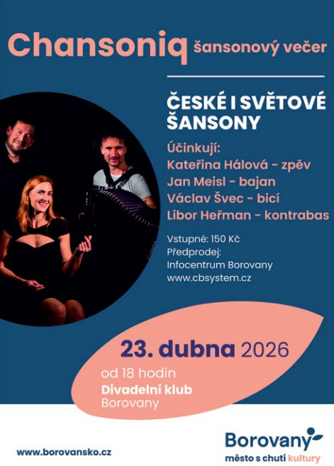 Pozvánka ve čtvrtek 23. dubna 2026 do Borovan na koncertní představení