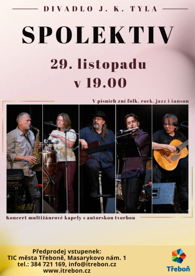 Srdečně vás zveme na výjimečný hudební večer s kapelou Spolektiv — skupinou, která „ muziku tvoří společně“ a staví živé hraní, upřímný kontakt s publikem a autorství na první místo.