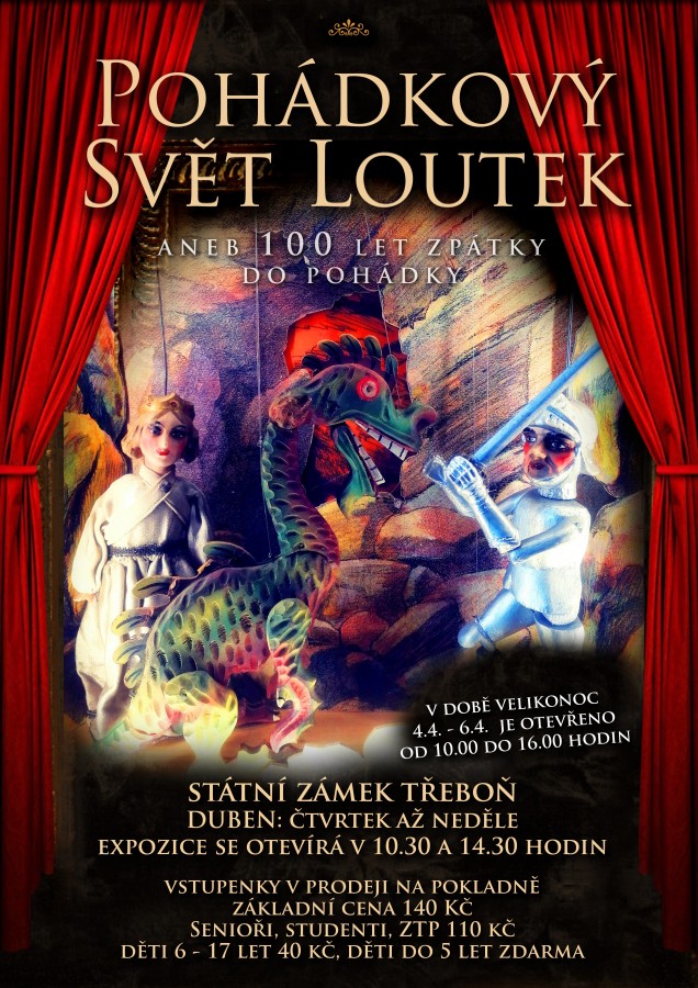 Třeboň (Jindřichohradecko) - Zámek Třeboň pro návštěvníky připravil novou prohlídkovou trasu plnou loutek. V nových prostorách Zahradního křídla v šesti místnostech lidé uvidí na 700 originálních loutek z období let 1906 až 1940 v dobových kostýmech, včetně historických kulis, stolních divadel a divadelních rekvizit. Loutky jsou velké od 20 centimetrů do půl metru. Loutky zapůjčili ze své sbírky manželé Rychovi, kteří sami oslovili třeboňský zámek, řekla dnes novinářům kastelánka Erika Suchanová.