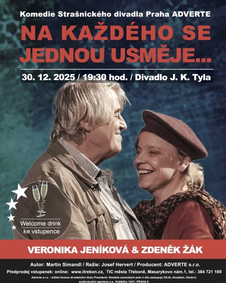 V předvečer Silvestra, v úterý 30. prosince 2025 jste zváni do Třeboně do Divadla J. K. Tyla na novou hru - komedii Strašnického divadla
