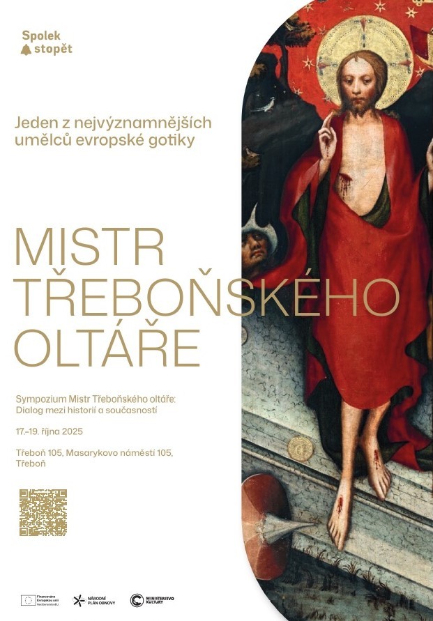 Pozvánka na sympozium Mistr Třeboňského oltáře: Dialog mezi historií a současností, které se bude věnovat dílu Mistra Třeboňského oltáře a uskuteční se v termínu 17. – 19. října 2025 v Třeboni 105 (Masarykovo nám. 105, Třeboň).