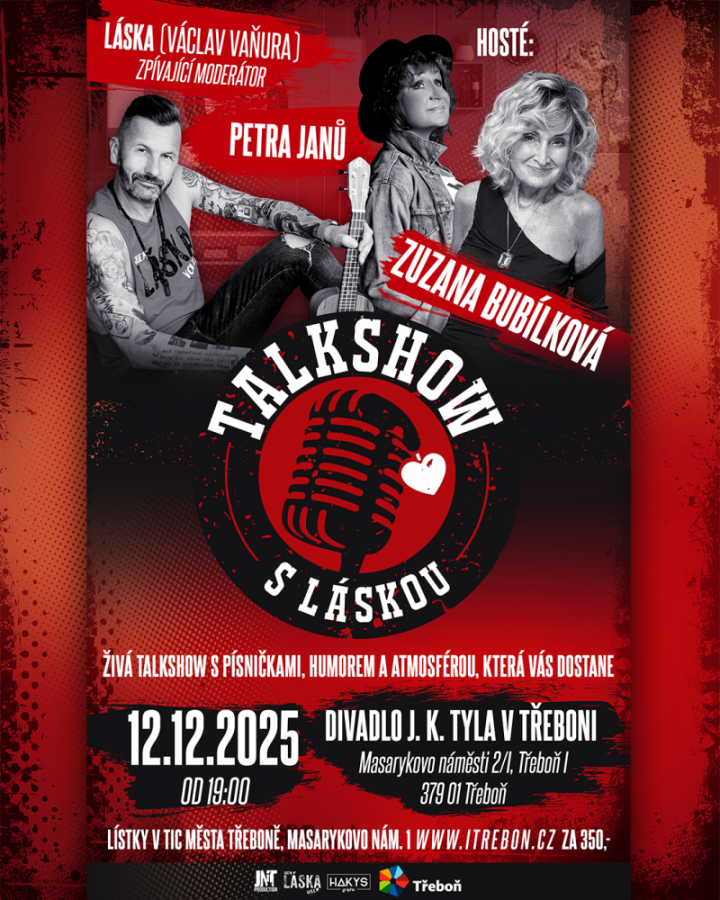 Pozvánka do Třeboně v pátek 12. prosince 2025 do Divadla J. K. Tyla na talkshow.