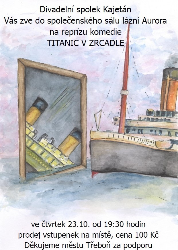 Divadelní spolek Kajetán zve na komedii o životním koučinku s názvem Titanic v zrcadle. Představení bylo inspirováno divadelní hrou Cry, baby, cry (kolektiv českých autorů).