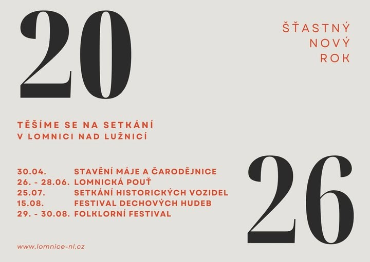 Kalendář významných lomnických tradičních akcí v roce 2026 ještě neznáme. V přehledu vycházíme z kalendáře uplynulých let, a jakmile bude u akce potvrzen termín 2026, doplníme jej a článek v odkaze zaktualizujeme.