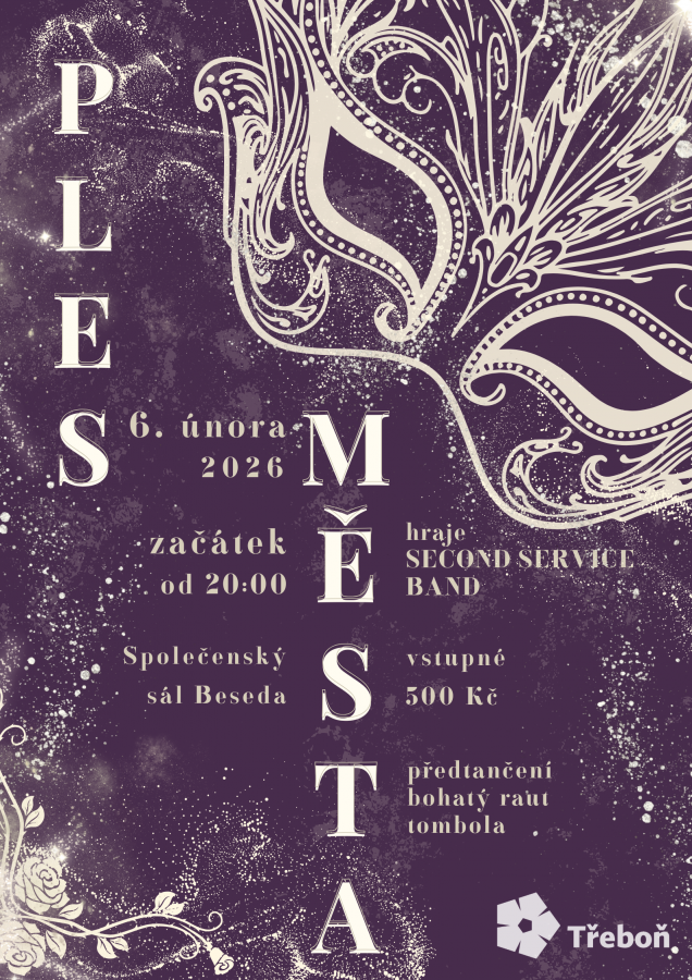 V pátek 6. února 2026 bude v Třeboni tradiční PLES MĚSTA TŘEBONĚ.