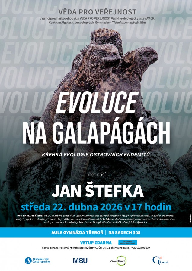 Pozvánka do Třeboně na další přednášku v rámci cyklu Věda pro veřejnost, kterou organizuje Mikrobiologický ústav AV ČR ve spolupráci s Gymnáziem Třeboň.