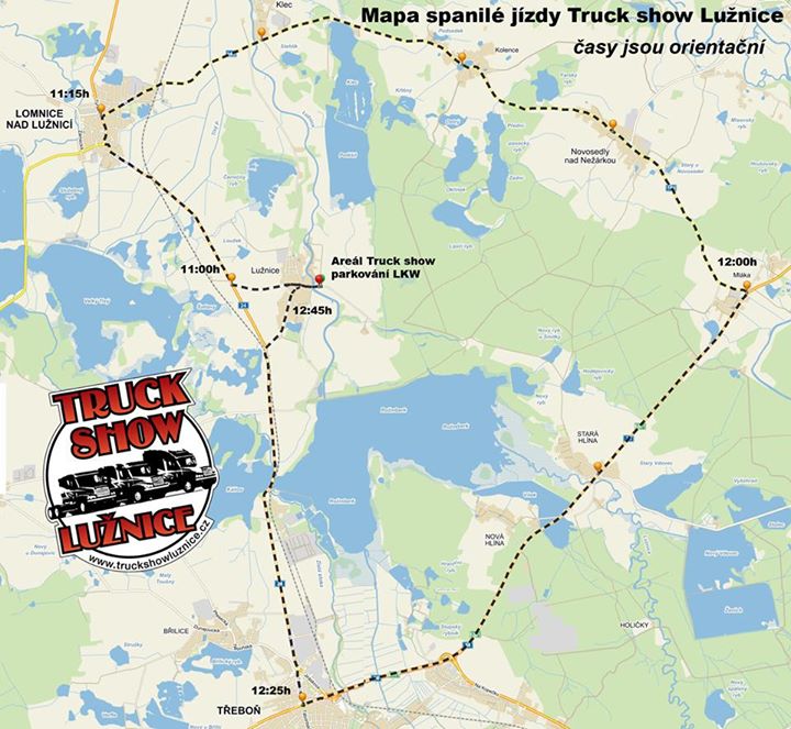 - orientační časy: Lomnice n. Luž 11.15, Mláka 12.00, Třeboň 12.25, zpět v Luž. 12.45