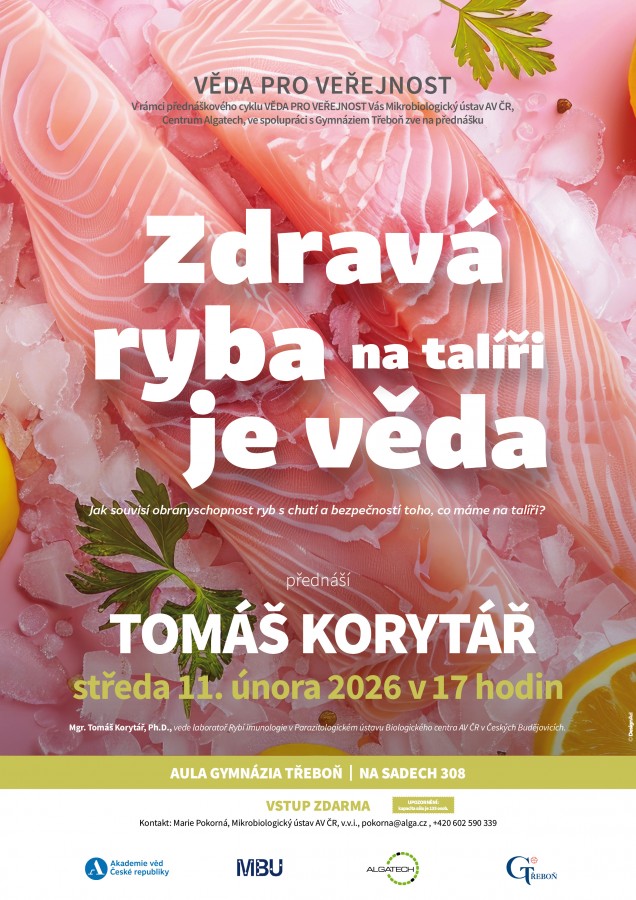 Pozvánka do Třeboně na další přednášku v rámci cyklu Věda pro veřejnost, kterou organizuje Mikrobiologický ústav AV ČR ve spolupráci s Gymnáziem Třeboň.
