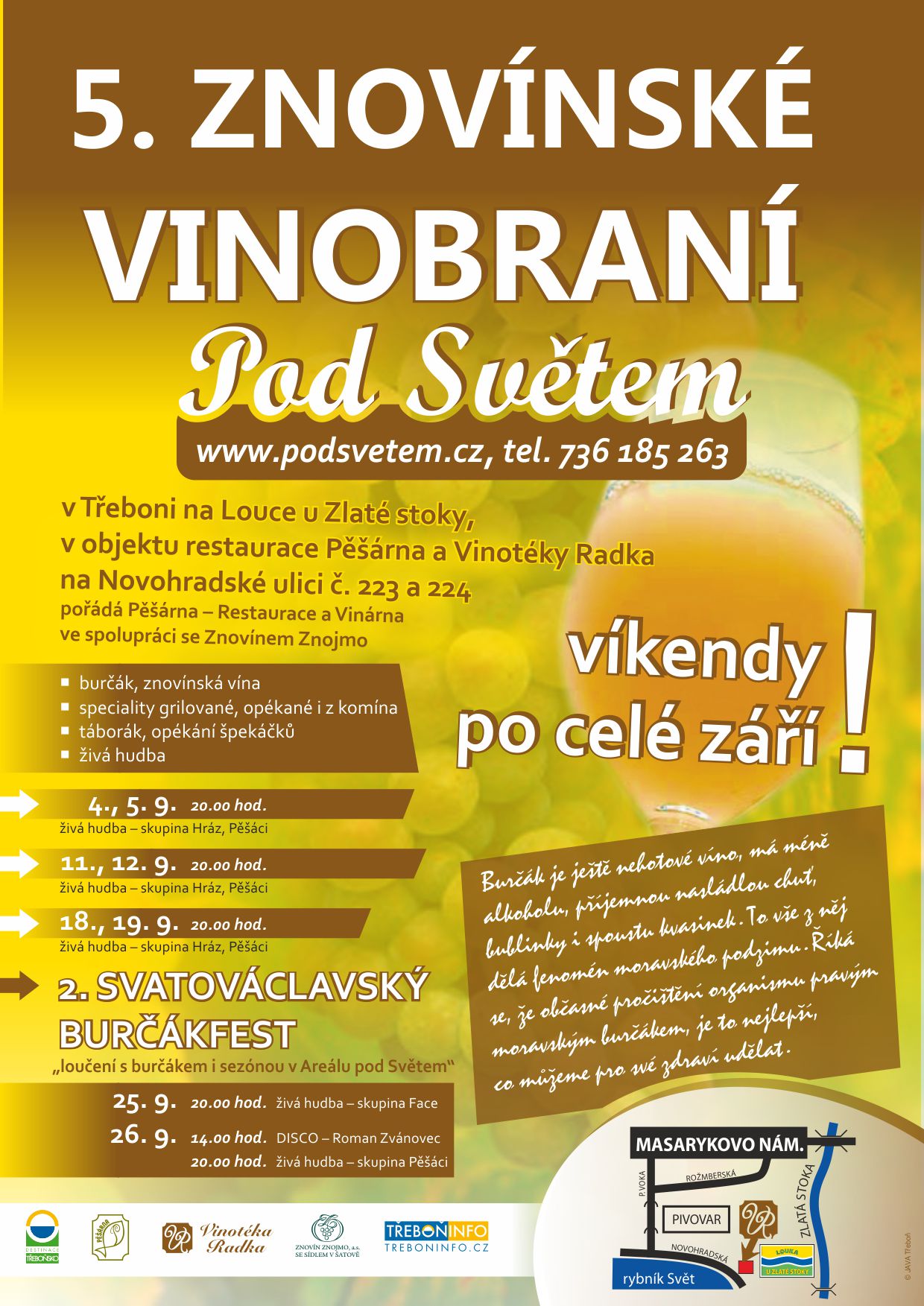 Nenechte si v Třeboni ujít návštěvu Areálu Pod Světem, kde nás po všechny víkendy v září 2015 čeká řada gastroakcí se společným jmenovatelem – Znovínem Znojmo.